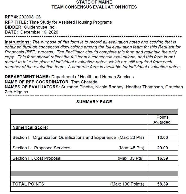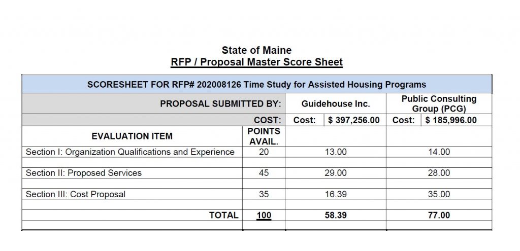 Proposal Evaluation | Buyer: ME | Bidder(s): Guidehouse, Public Consulting Group | Date: 12/28/2020 | CN:GB104