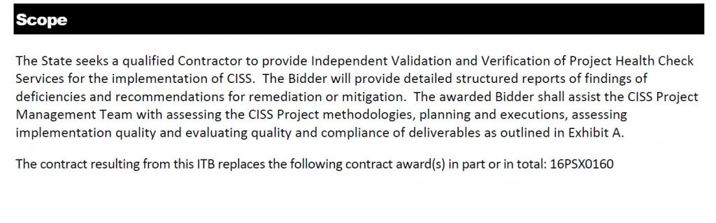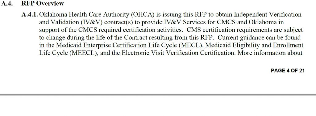 Buyer: OK Healthcare Authority | Due date: June 25, 2020 | Scope summary: IV&V for MMIS certification |